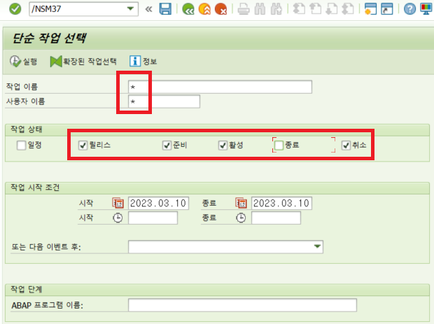 배치잡 삭제를 위해 SM37 조회.